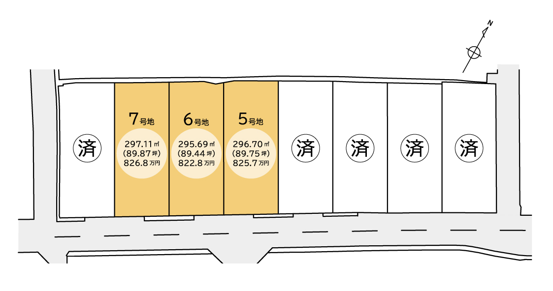 閑静な住宅地。広い宅地につき平屋住宅向き。